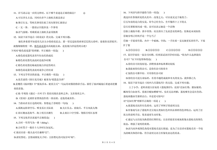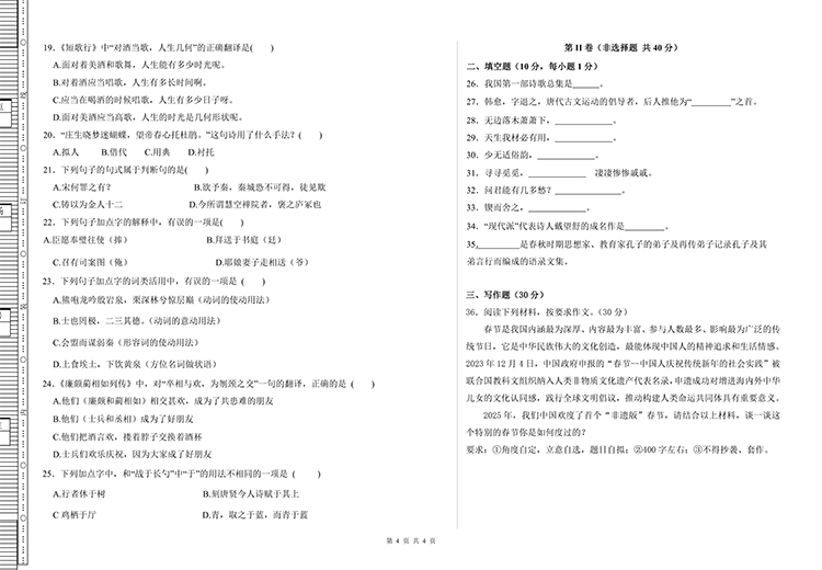2025年江西高职单招文化素质统考真题(含答案),语文数学全套。