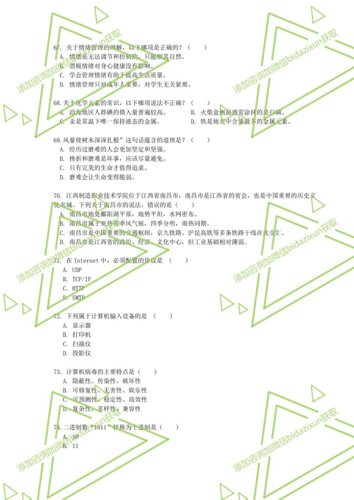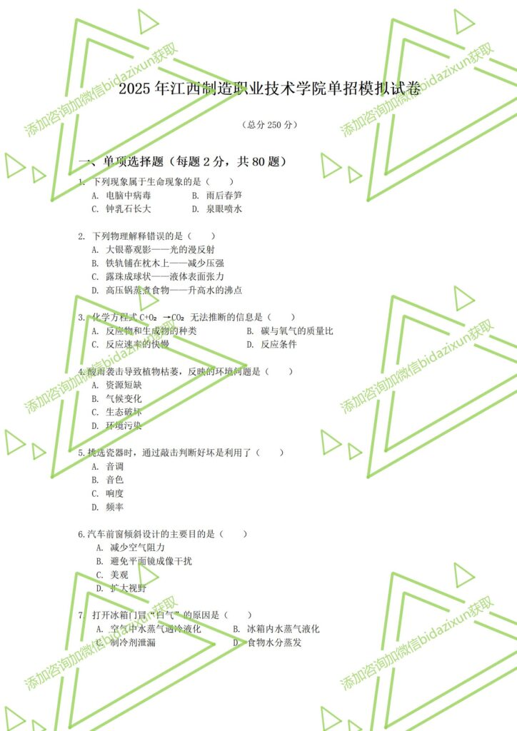江西制造职业技术学院2025年单独招生考试模拟试卷 3周前 历年真题 284 添加 bidazixun,微信领取,专人服务 本套模拟试卷紧密围绕江西制造职业技术学院2025年单招考试大纲与命题方向, 本试题为模拟练习资料,非官方真题,预祝各位考生成功! 阅读全文 0 1 江西制造职业技术学院
